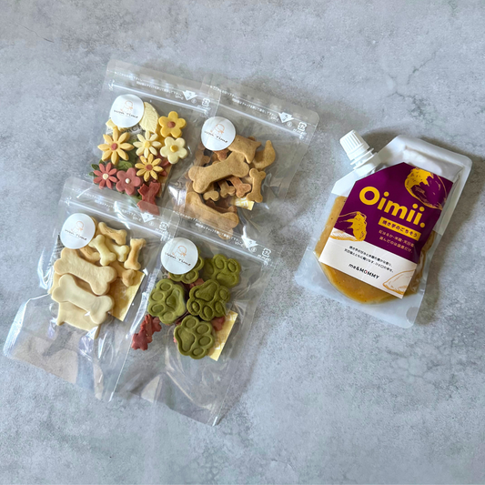 愛犬のアレルギーが心配で、無添加のおやつを探していたところこちらのクッキーに出会いました。種類がたくさん入っていて、どれも素材の香りがしっかりしていて安心感があります。特にきな粉はうちの子のお気に入りで、袋を見せるだけで大興奮!