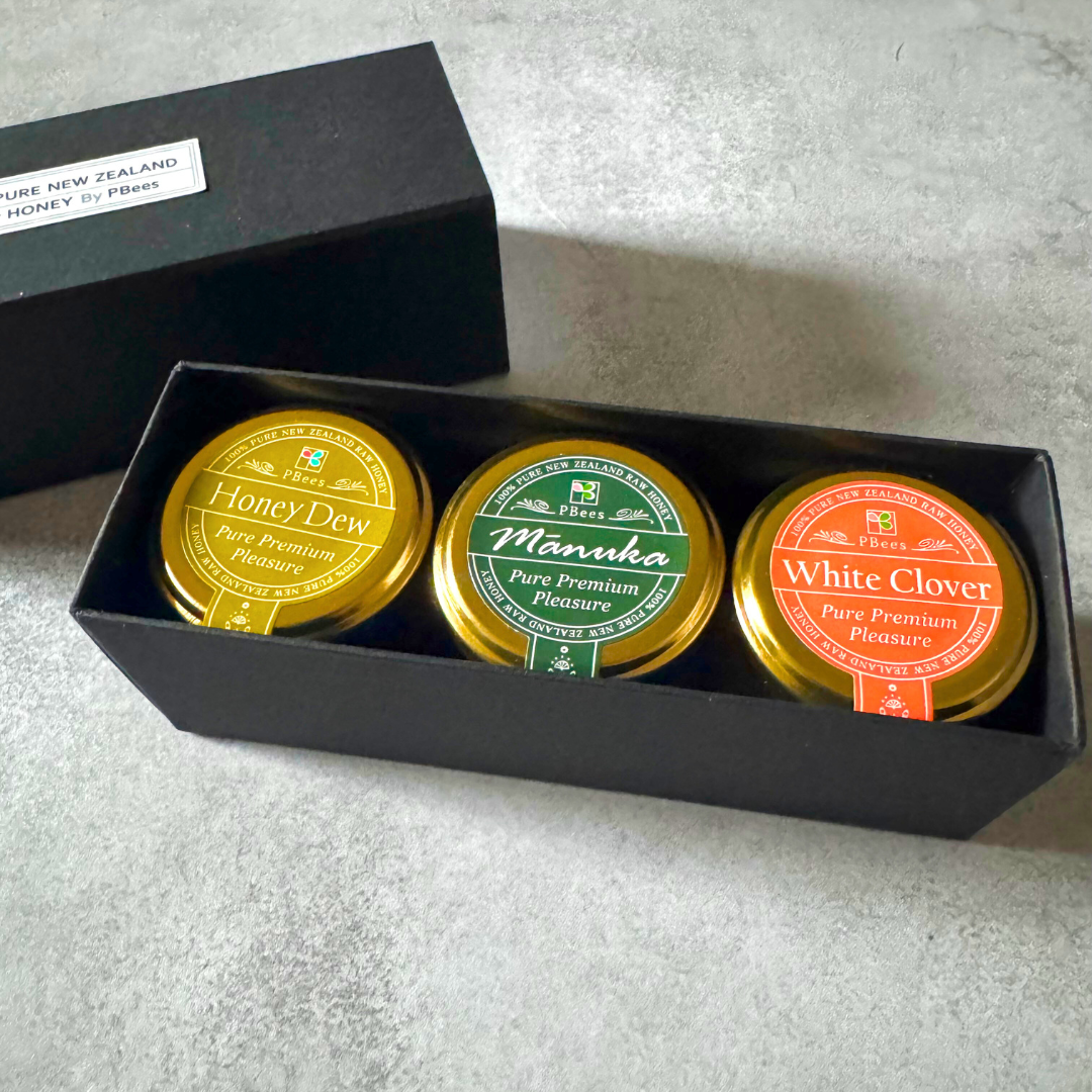 犬と一緒に食べられる 生はちみつ小瓶3種セット ギフトボックス付 マヌカ &ホワイトクローバー &ハニーデュー