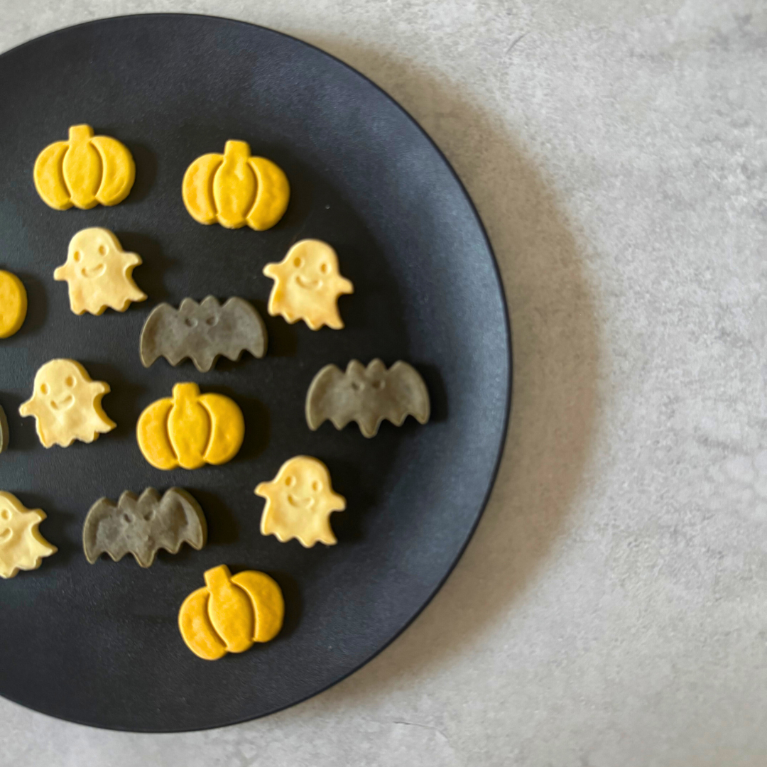 ハロウィンシーズン限定! オバケ、かぼちゃ、コウモリの かわいい形の米粉クッキーです。