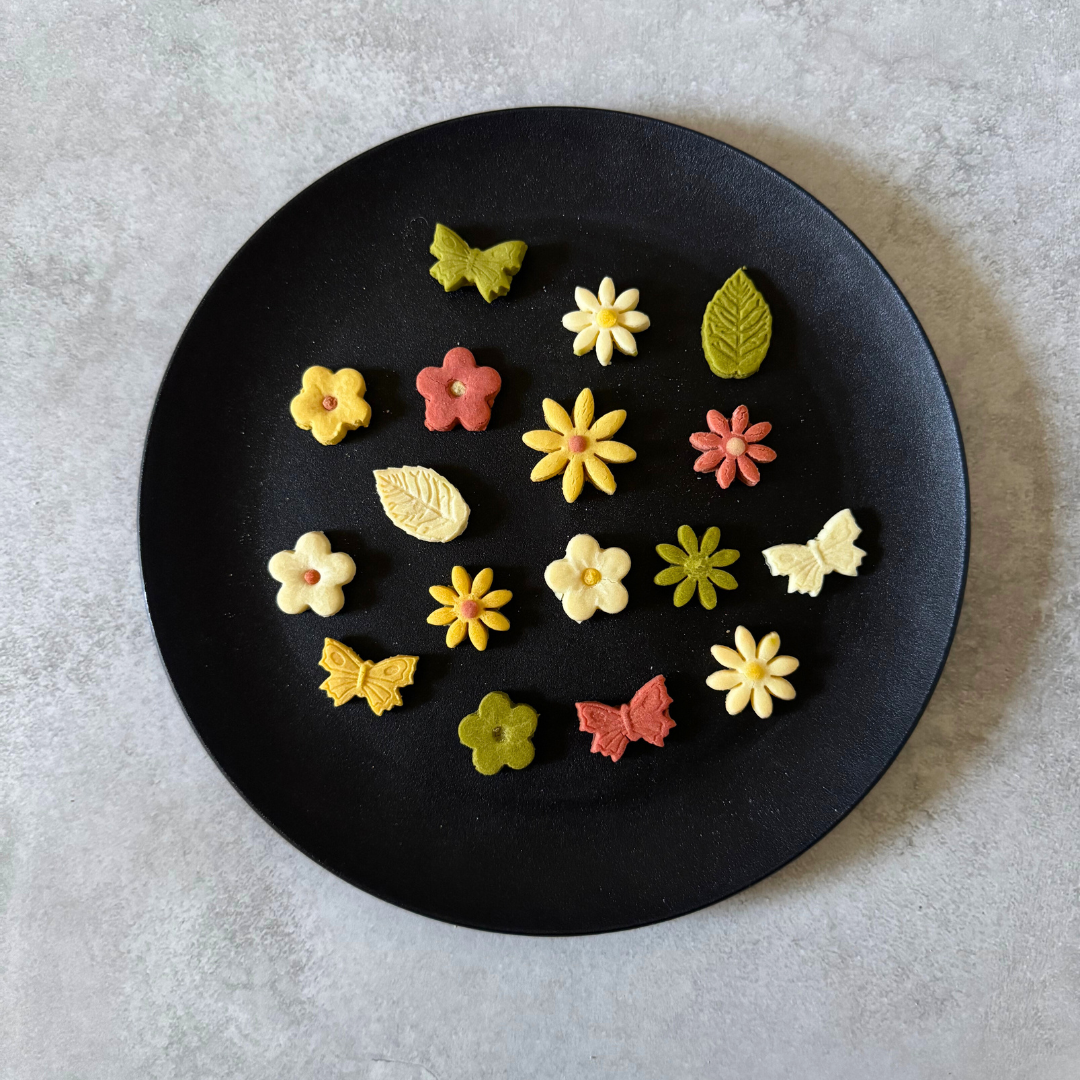 色鮮やかな花びらを形をしたかわいい米粉クッキーです。